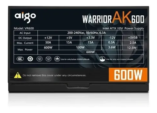 ¡Asegura la energía y la estética de tu PC! Equipa tu sistema con la Fuente de Alimentación Aigo Warrior AK600 Max de 600W.