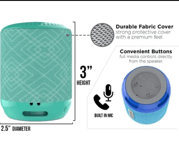 Clip incorporado para mantener el altavoz seguro en su bolsillo o en su mochila