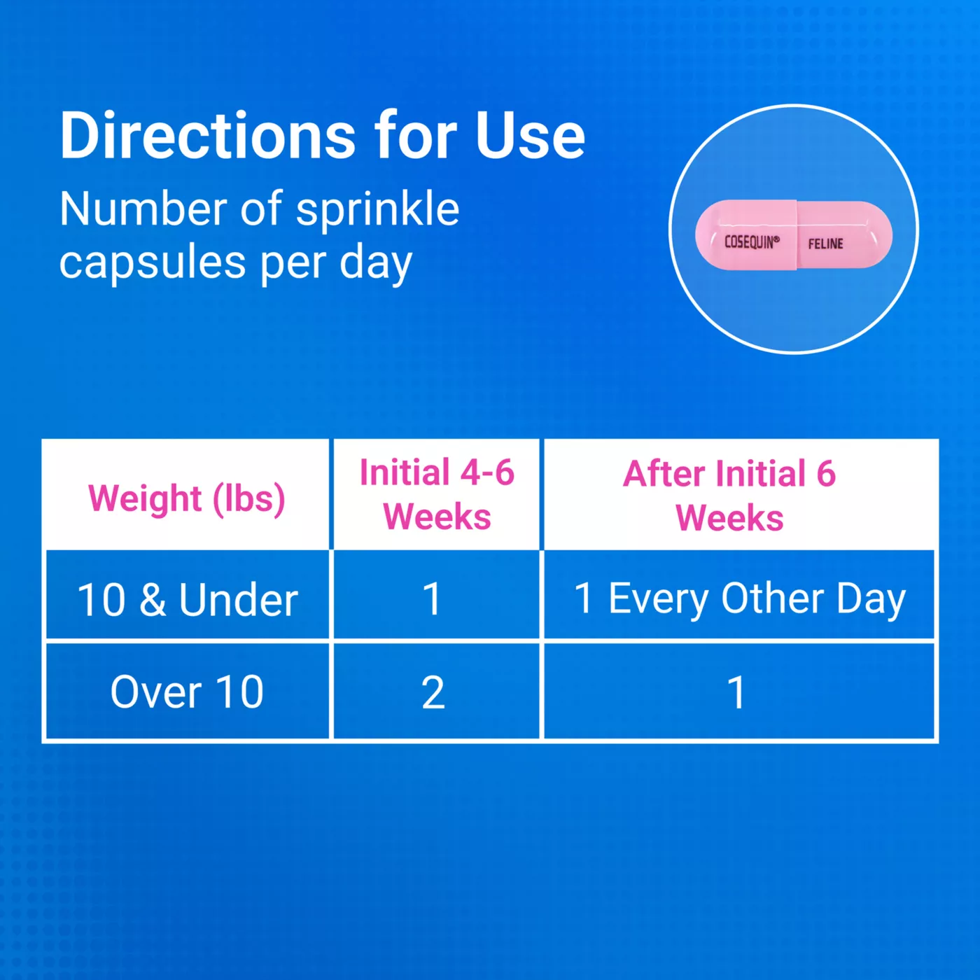 • Salud de la Vejiga: Al igual que el Cosequin original, los ingredientes ayudan a proteger el revestimiento de la vejiga urinaria, un beneficio extra para la salud felina.