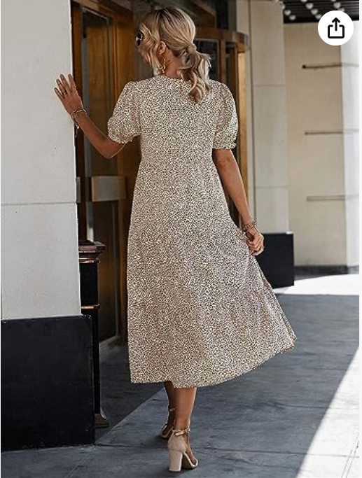 - 3. Características: vestido de verano para mujer, estampado floral, estilo bohemio, longitud media, vintage, manga corta abombada, dobladillo holgado, cuello redondo, ajuste suelto, aspecto vintage y elegante, dobladillo con volantes, cintura alta que muestra perfectamente tu buena figura corporal, estampado de lunares, mini vestidos acampanados, tu mejor opción para el verano caliente.
