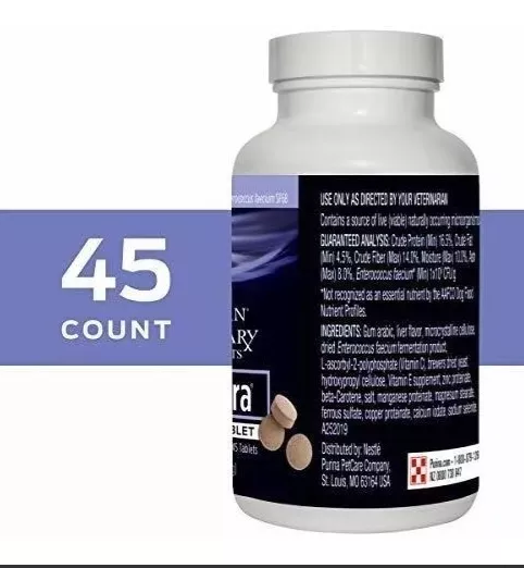 (1) Bote de 45 unidades – Suplementos veterinarios Purina Pro Plan Suplementos de tabletas masticables FortiFlora Suplemento probiótico para el manejo dietético de cachorros y perros adultos con diarrea Contiene un probiótico probado para promover la microflora intestinal normal Proceso de microencapsulación patentado para mayor estabilidad Contiene un nivel garantizado de microorganismos vivos
