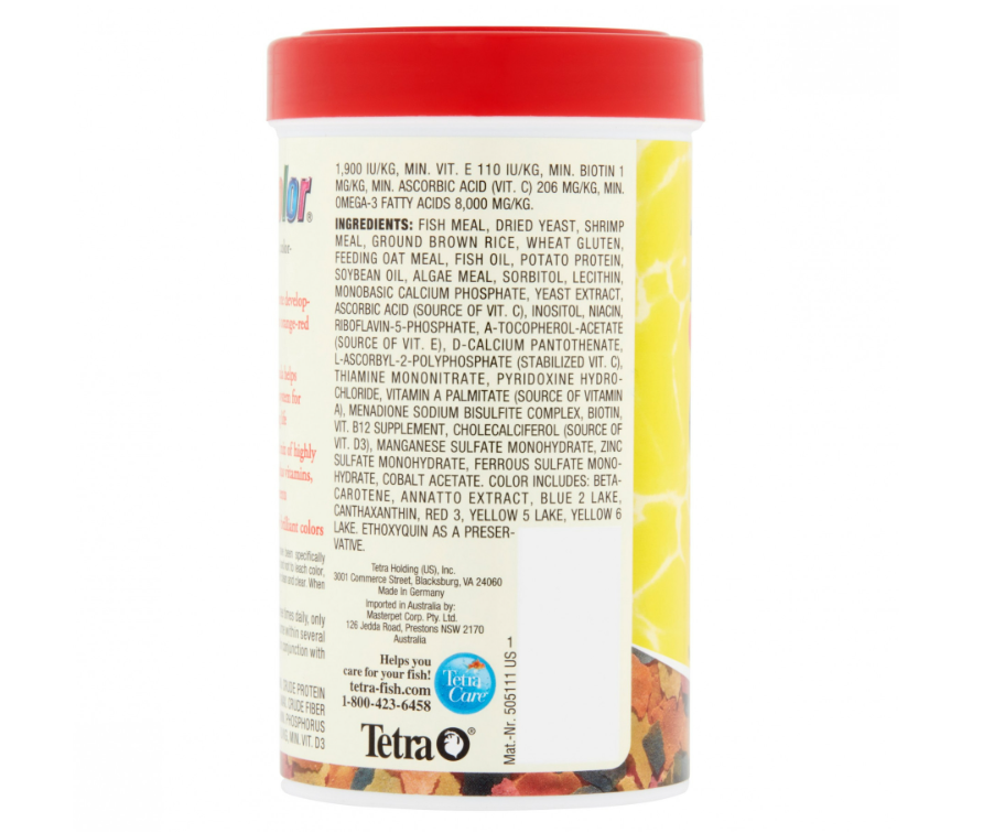 Si quieres mantener el color de tus peces tropicales brillantes, TetraColor los Copos son una buena opción. Que está especialmente diseñado para ser una parte saludable de su régimen. El pescado de escamas, se refuerza con la vitamina C para una dieta nutricionalmente equilibrada dieta. Usted puede mantener su pez de aspecto hermoso por la alimentación de ellos estas escamas diaria.
